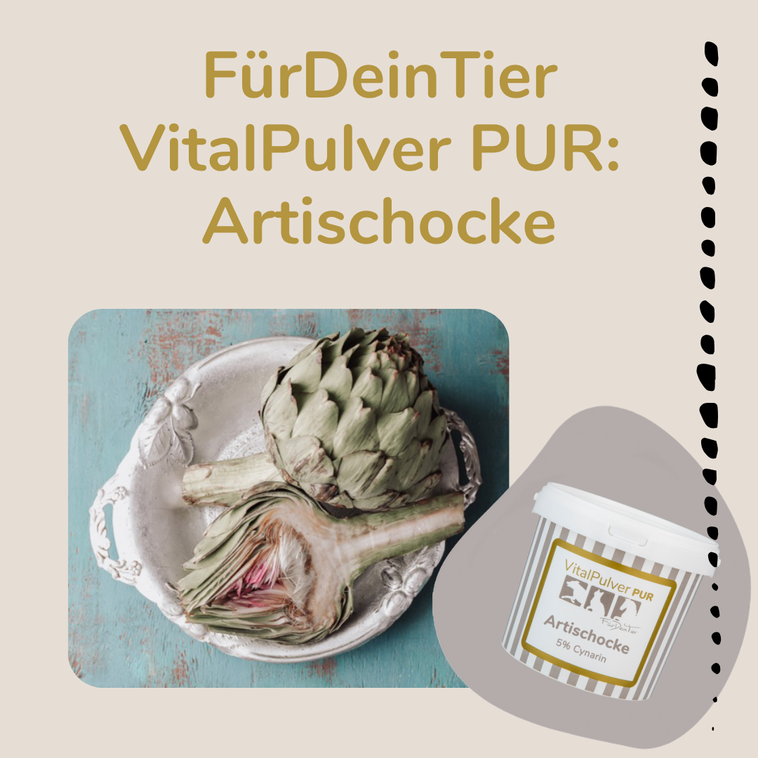 Unser Artischocken-Vitalpulver wird aus den Blättern der Artischockenpflanze (Cynara scolymus) gewonnen. Als naturbelassenes aber konzentriertes Futtermittel kann es die tägliche Ration von Hunden, Katzen und Pferden um pflanzliche Bitter- und Ballaststoffe ergänzen.
