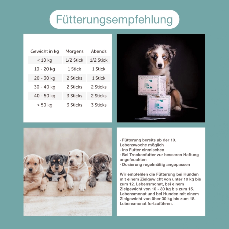 | Empfohlene Fütterungsdauer von CaniMove breed | |