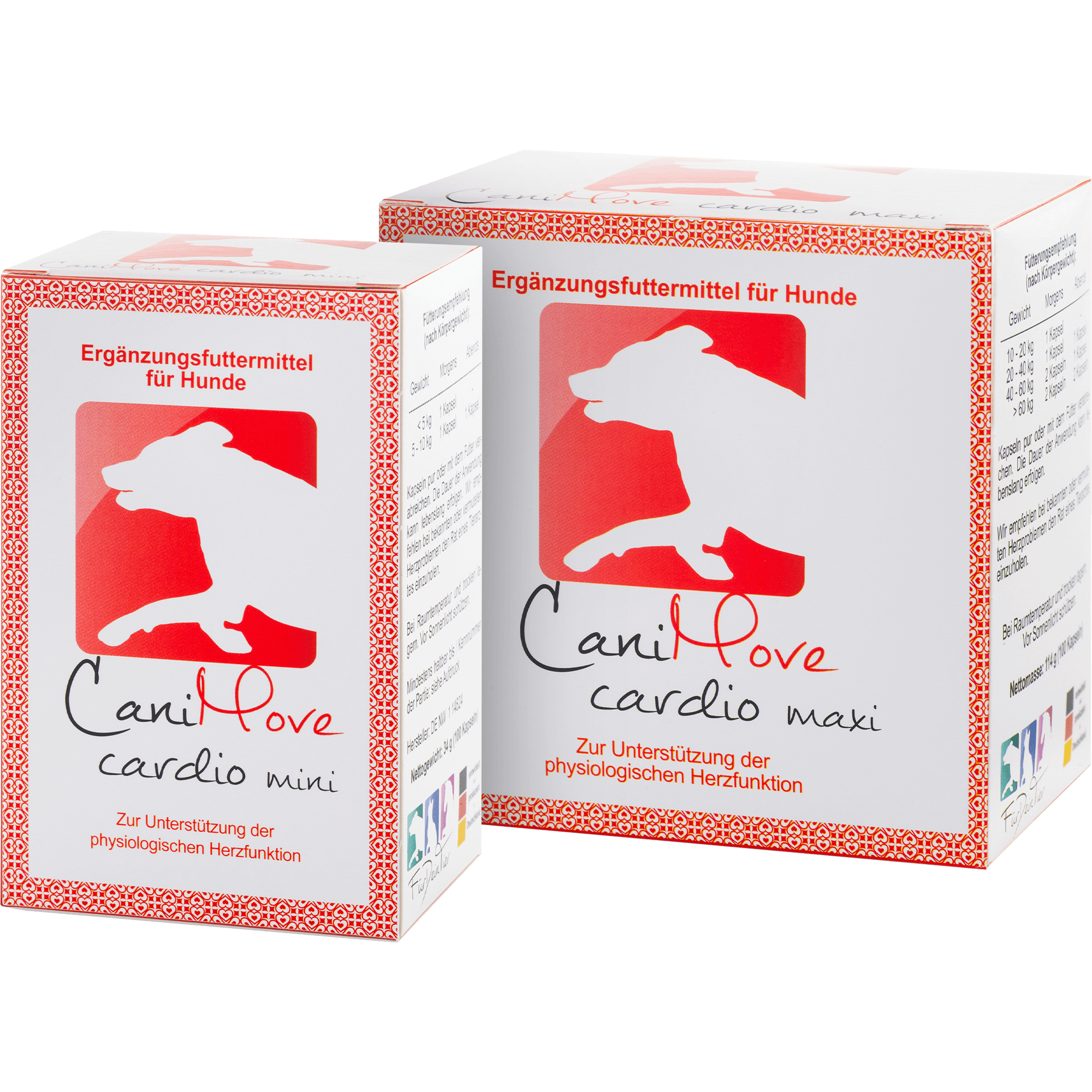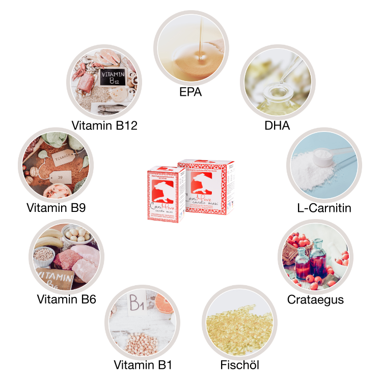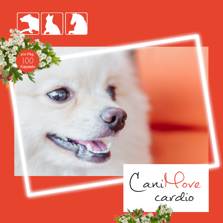 Mit Omega-3-Fettsäuren, L-Carnitin, Weißdorn-Extrakt und B-Vitaminen. Das in zwei Größen verfügbare CaniMove cardio enthält 100 Kapseln mit einer auf das Herz-Kreislaufsystem zugeschnittenen Kombination wertvoller Inhaltsstoffe. CaniMove cardio kann die Fütterung gesunder sowie erkrankter Tiere ergänzen. Es bestehen keine bekannten negativen Interaktionen mit tierärztlichen Herztabletten oder Herzmedikamenten.