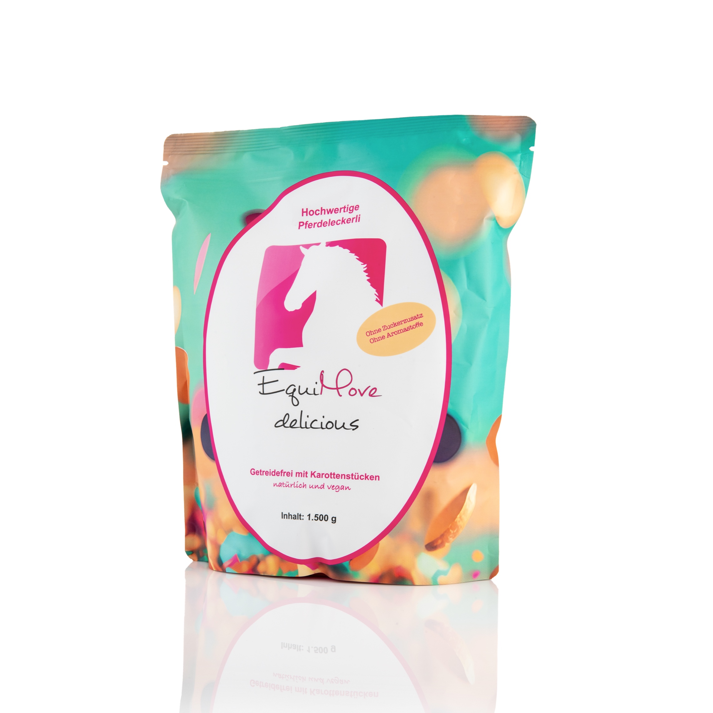 EquiMove delicious ist in unserem nachhaltigen, komplett recyclingfähigen (Mono-Layer!) 1,5 kg-Beutel erhältlich. Sieht nicht nur toll aus, sondern macht auch Freude. EquiMove delicious ist das perfekte handliche Futter als Belohnung oder Snack.