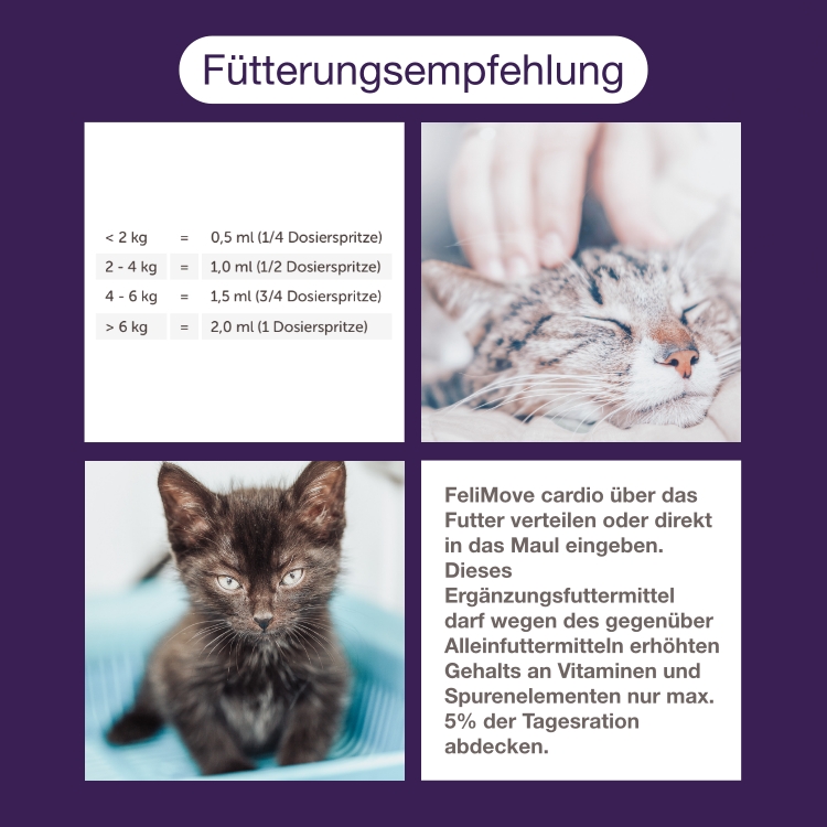 FeliMove dental über das Futter verteilen oder direkt in das Maul eingeben.